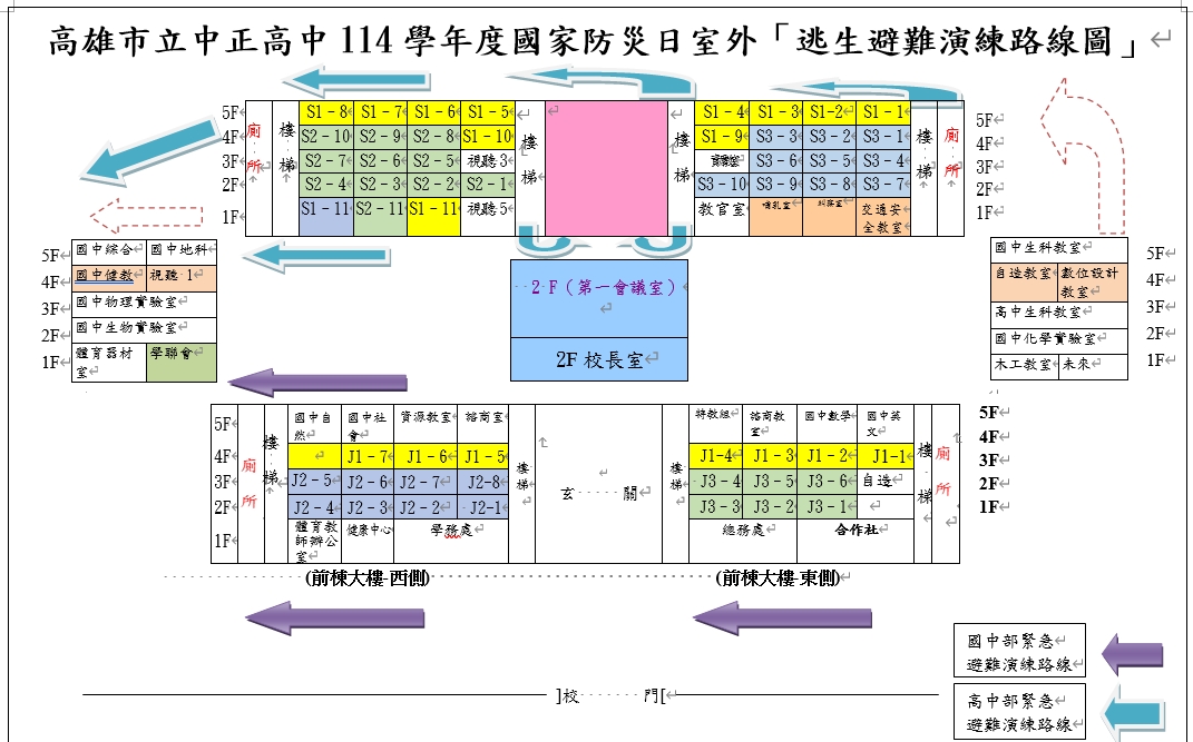 校園安全地圖 / 中正高中114學年度國家防災日室外逃生避難演練路線圖