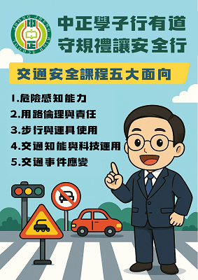 - 輔導學生社團,結合社區並運用社區各種資源,推展交通安全教育、宣導工作