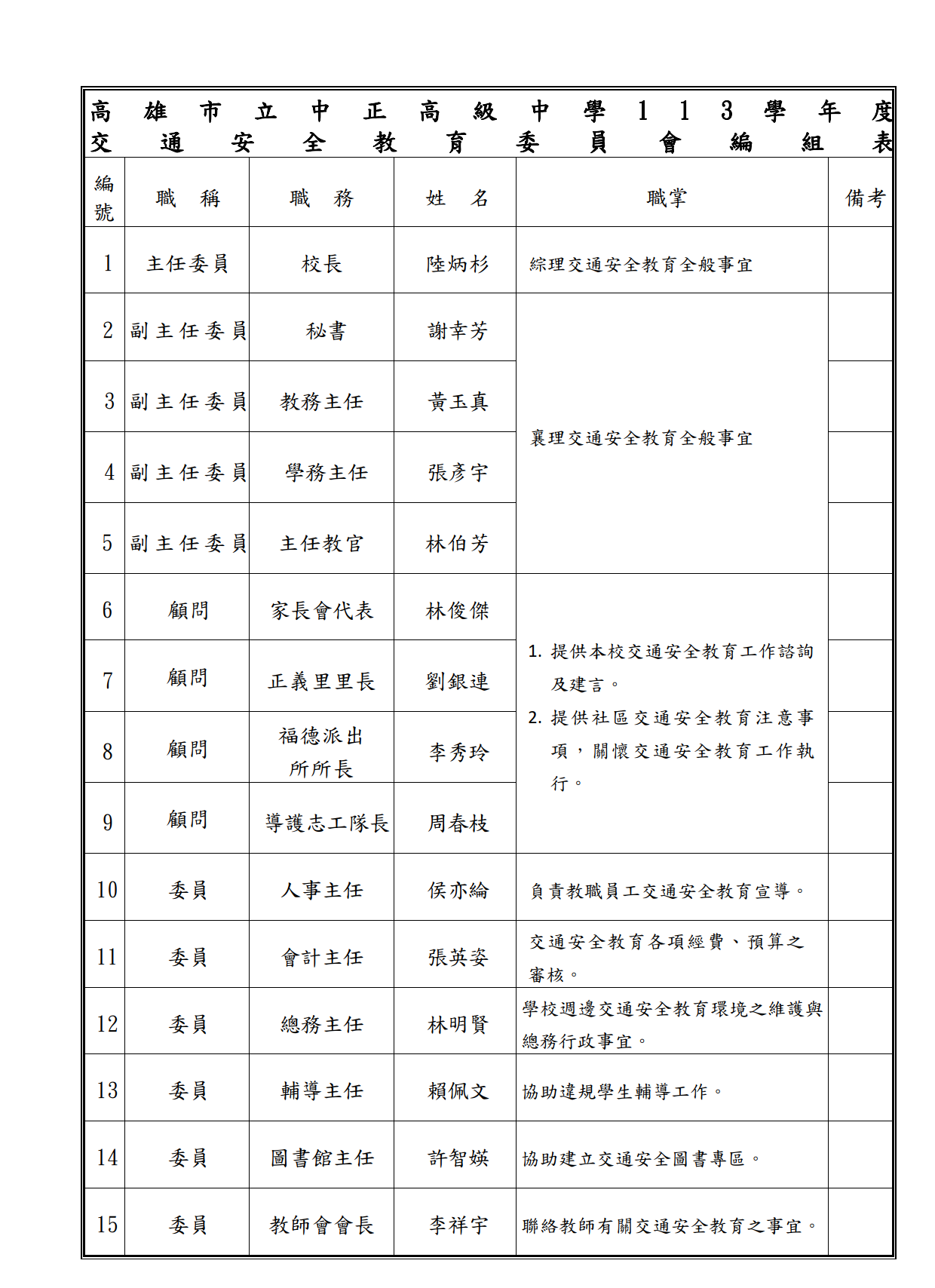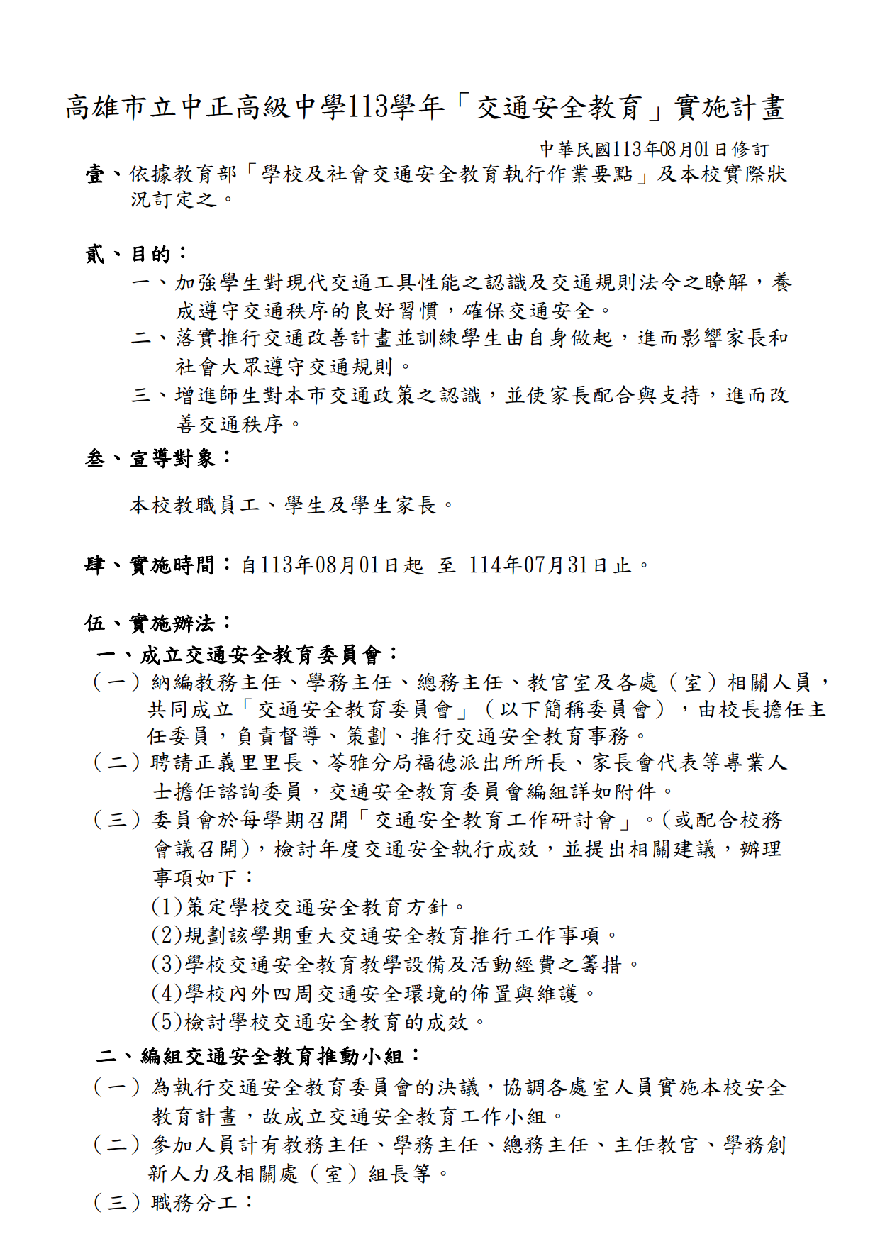 - 113學年度高雄市中正高中 交通安全訪視自評表
