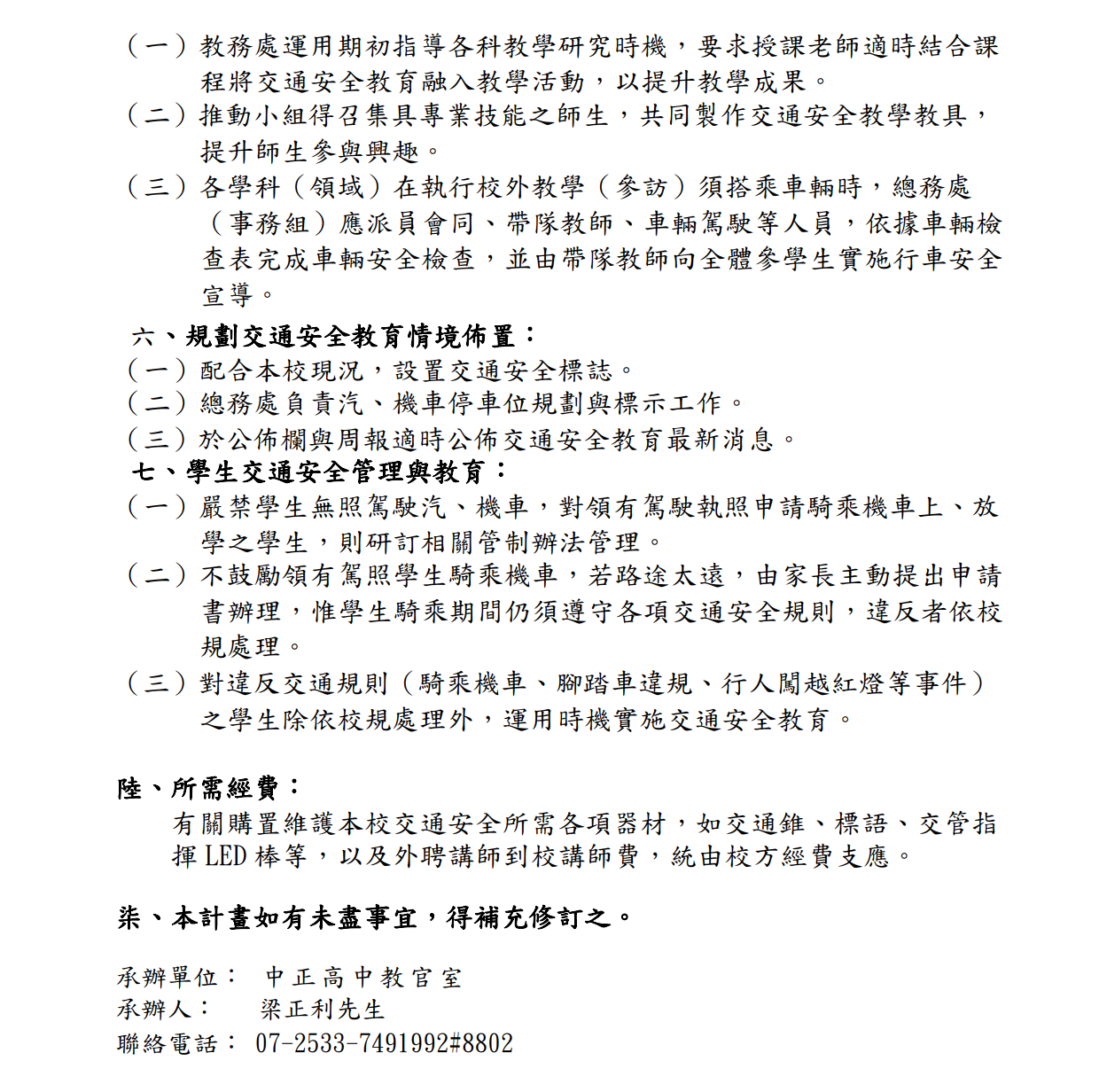 - 舉辦學生交通安全活動、訓練、研習、比賽等
