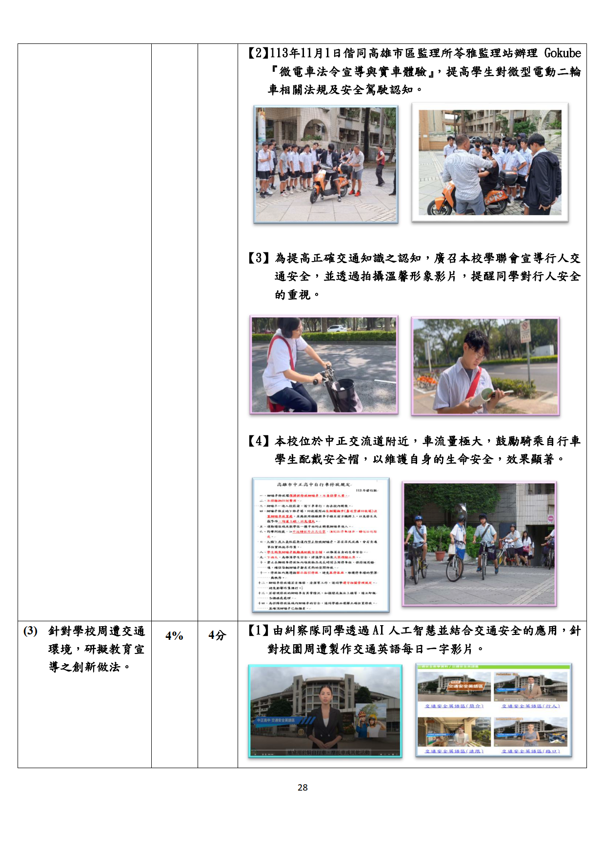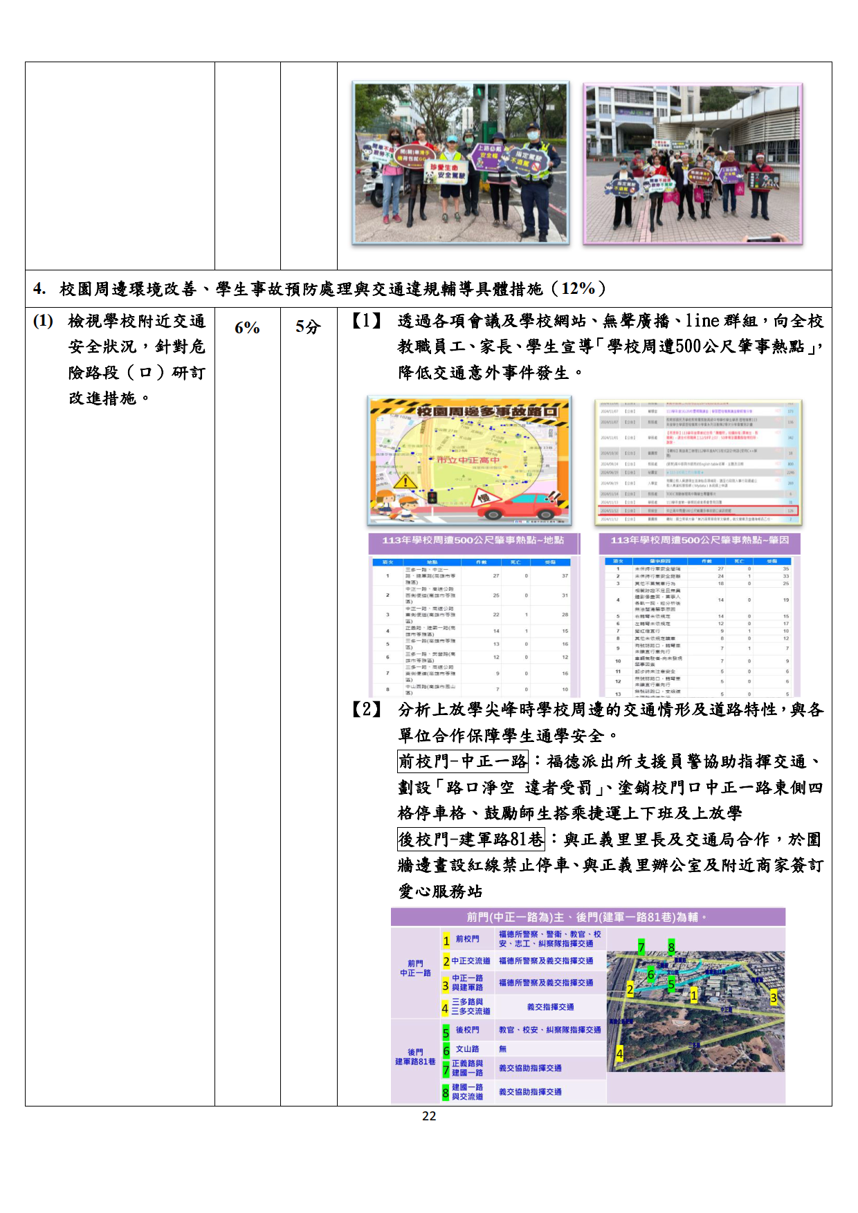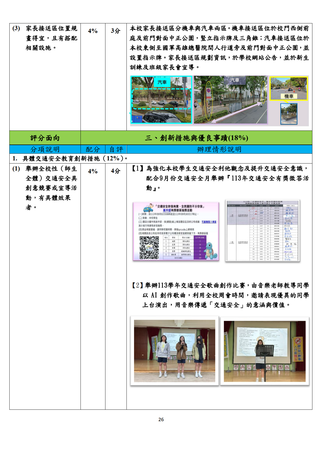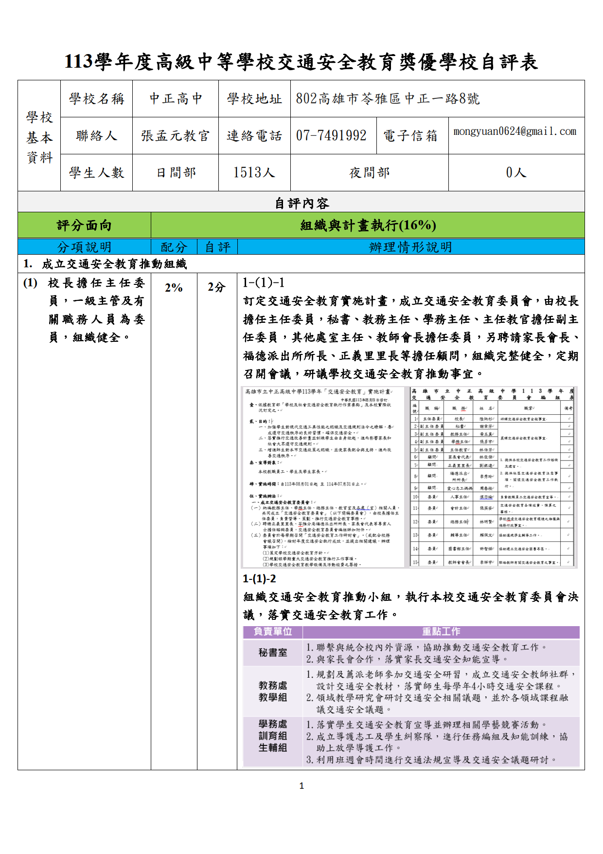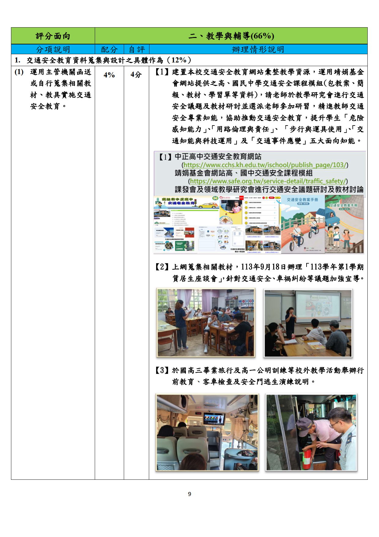 交通安全教育訪視專區 / 113學年度高雄市中正高中 交通安全訪視自評表