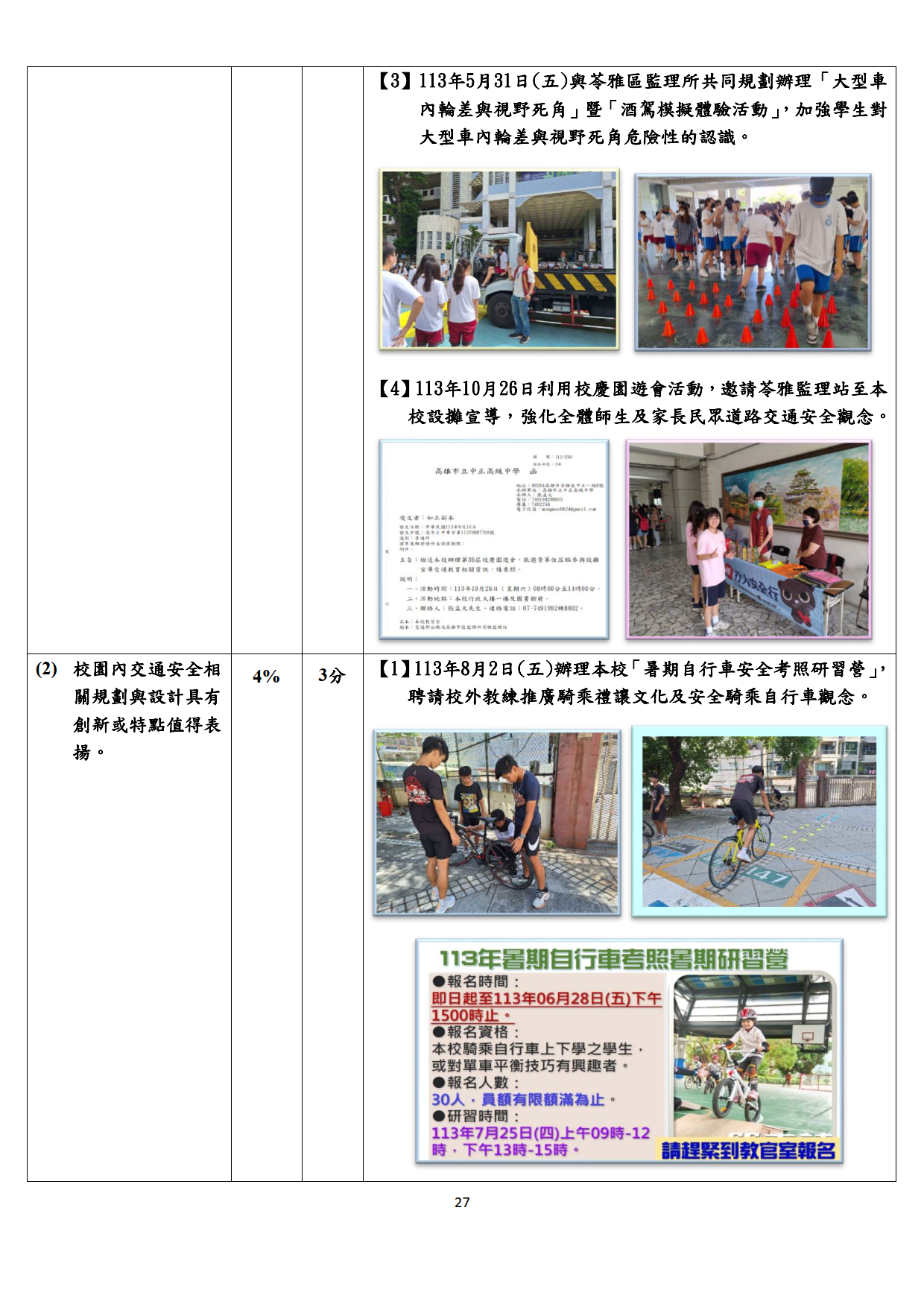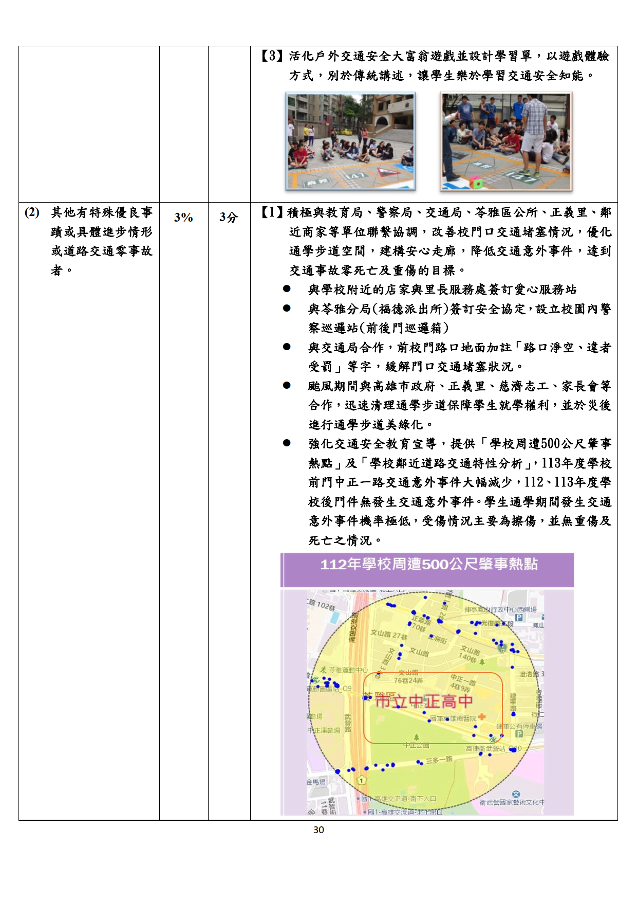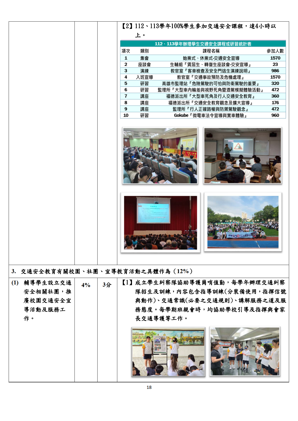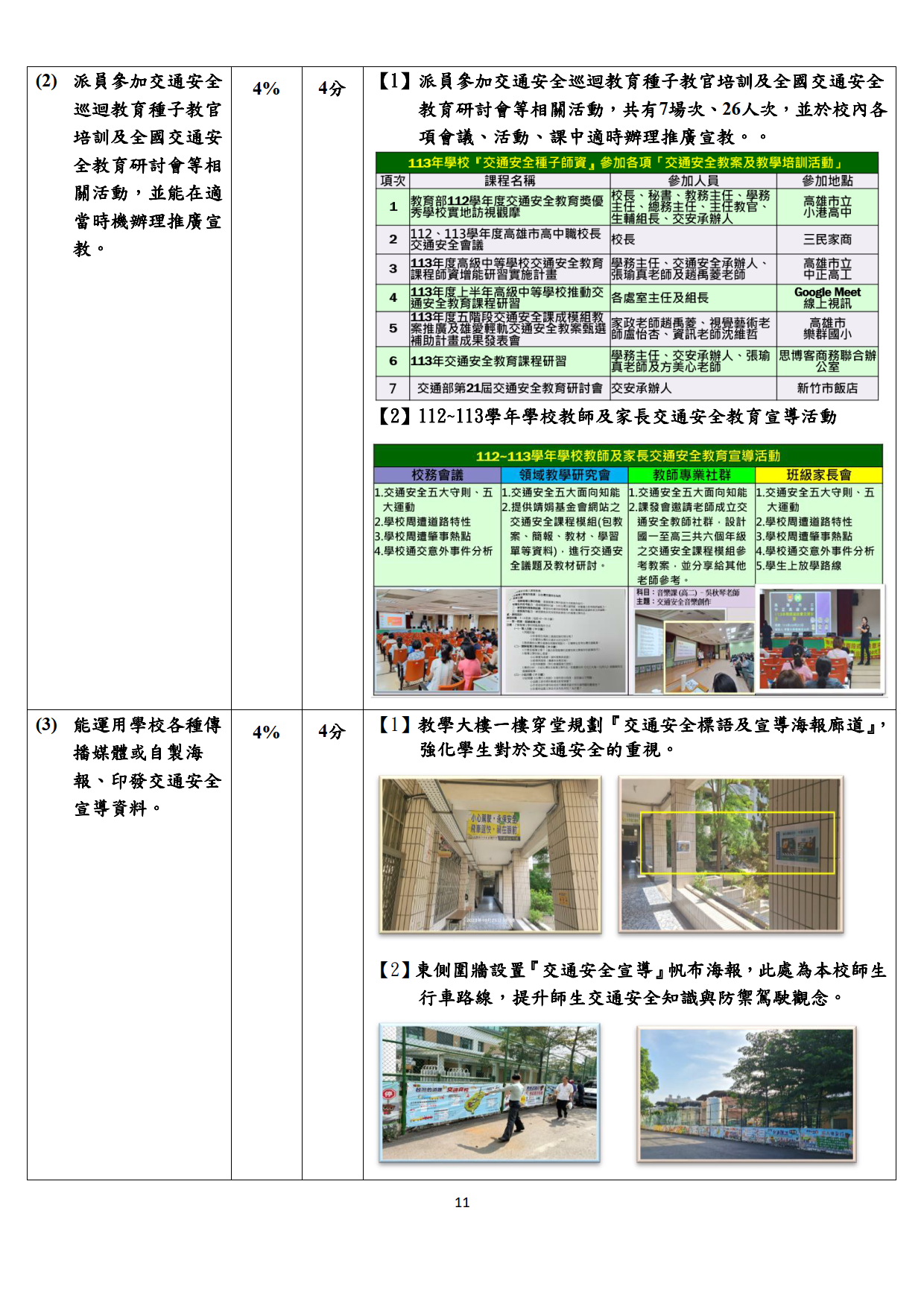 交通安全教育訪視專區 / 113學年度高雄市中正高中 交通安全訪視自評表