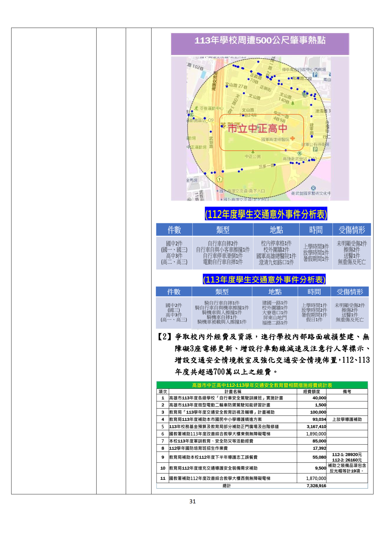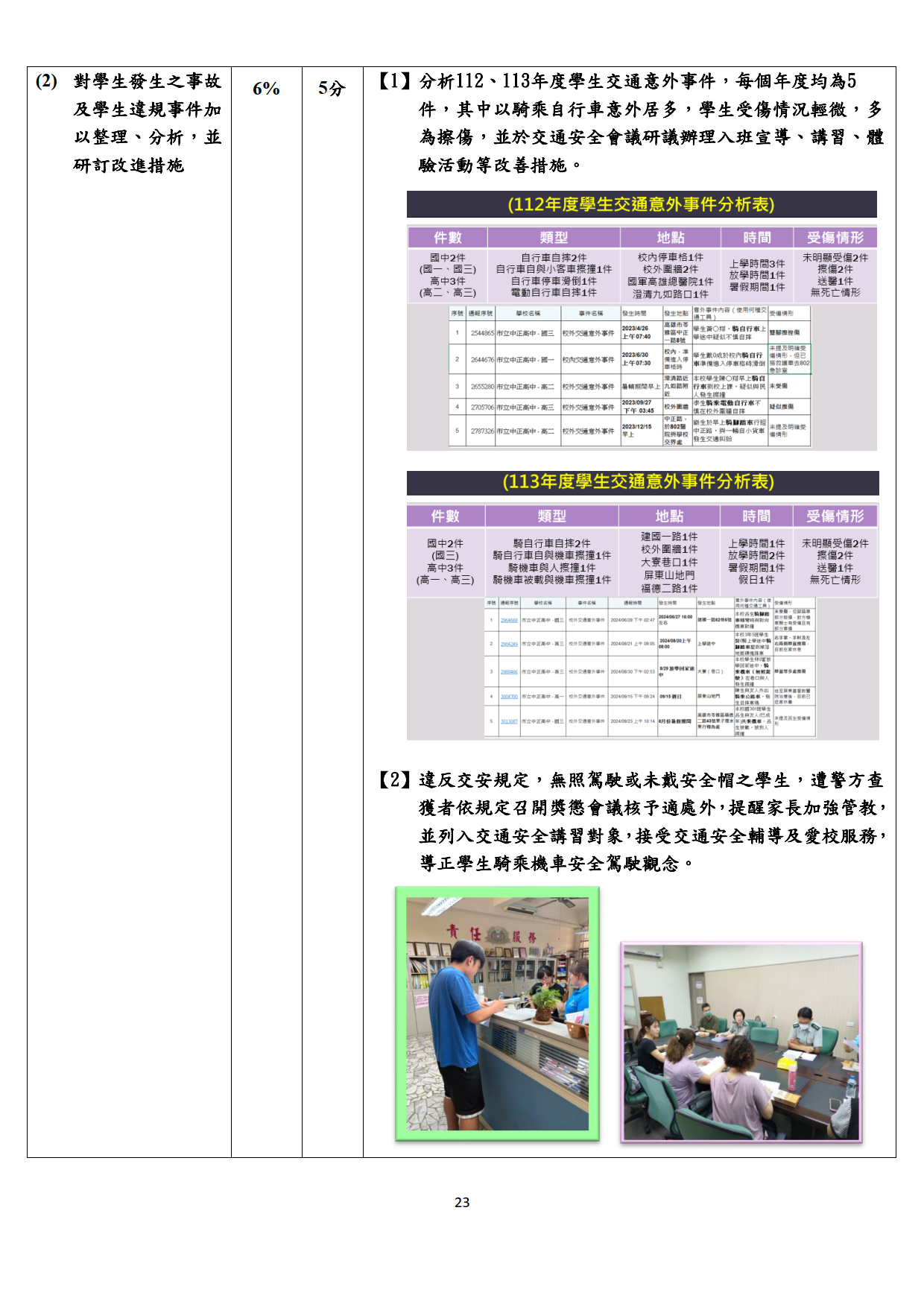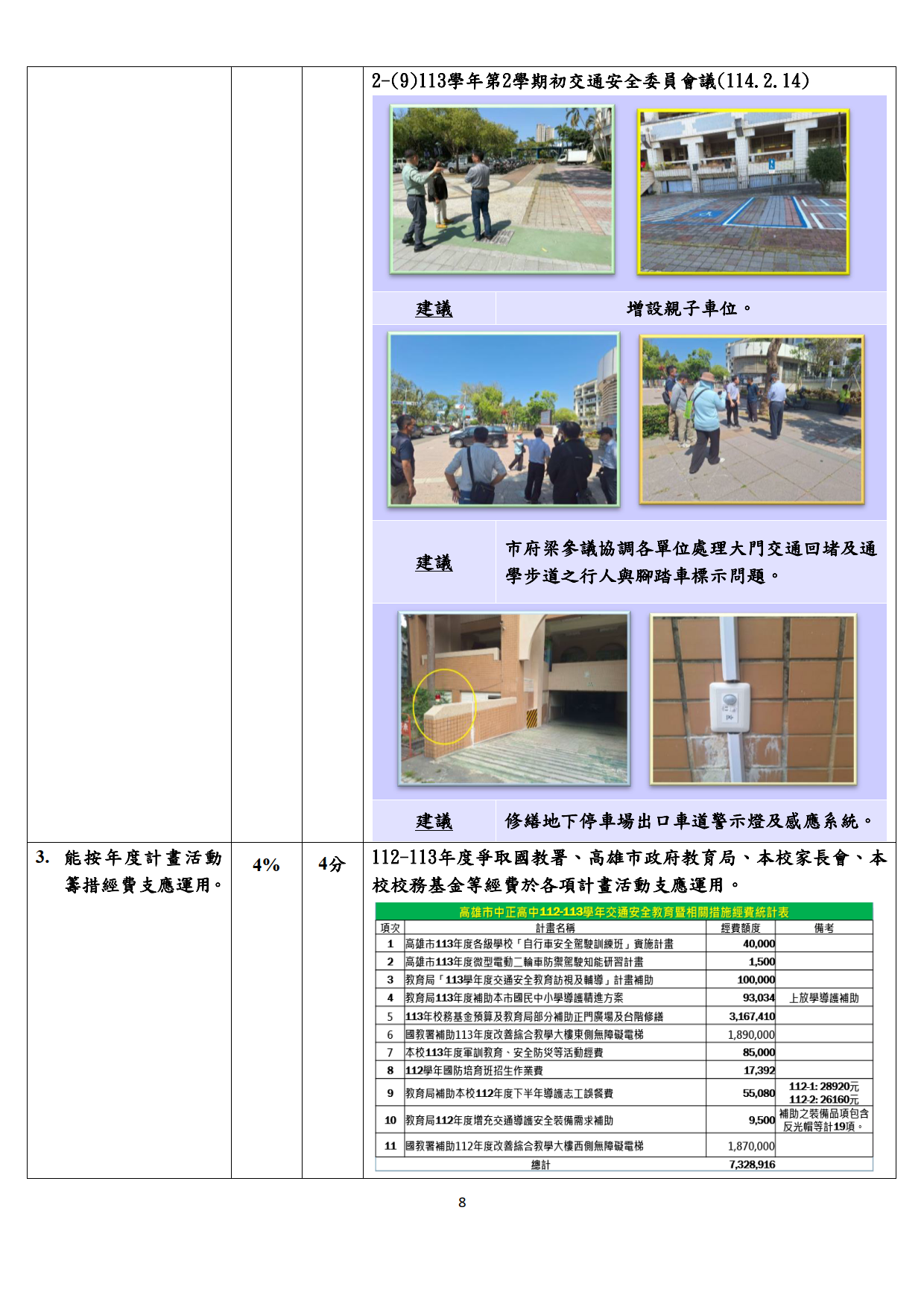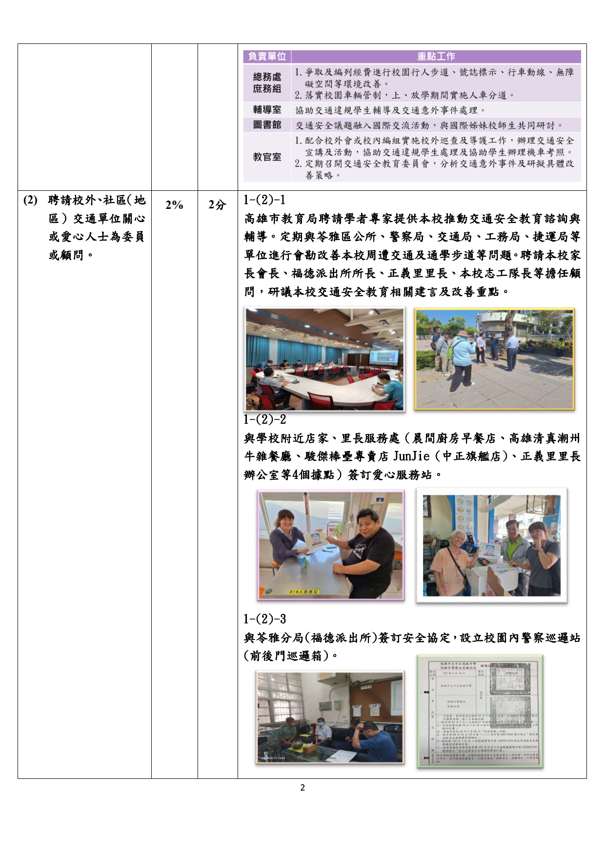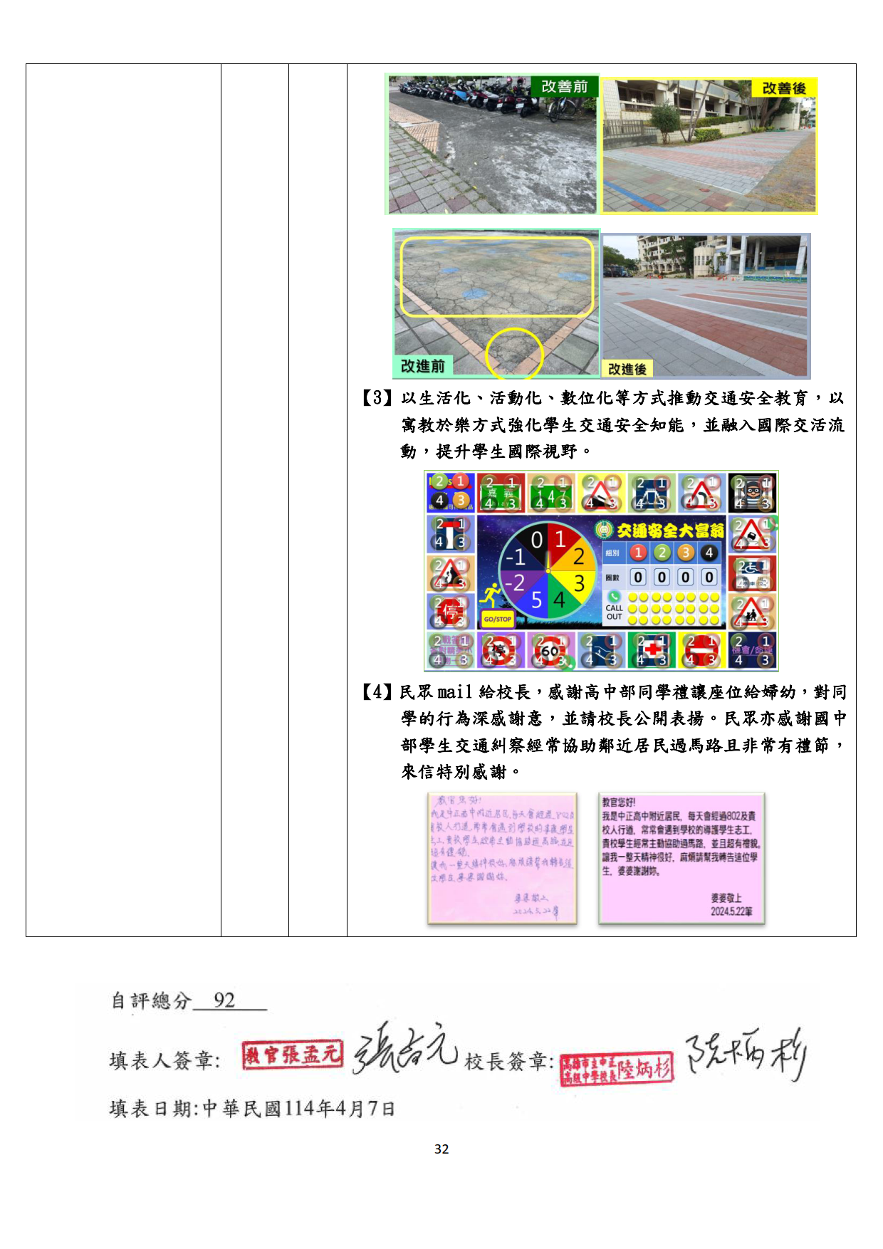 交通安全教育訪視專區 / 113學年度高雄市中正高中 交通安全訪視自評表