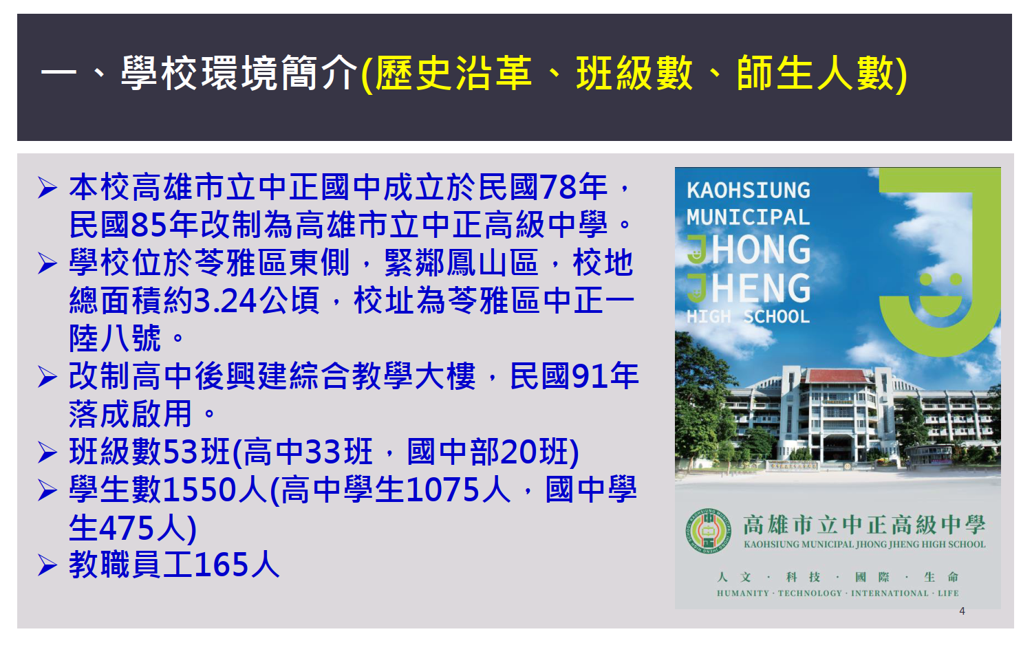 交通安全教育訪視專區 / 學校環境簡介 / 歷史沿革、班級數、師生人數