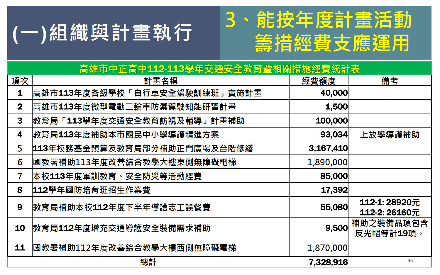 交通安全教育訪視專區 / 評鑑內容 / 組織與計畫執行 / 能按年度計畫活動籌措經費支應運用