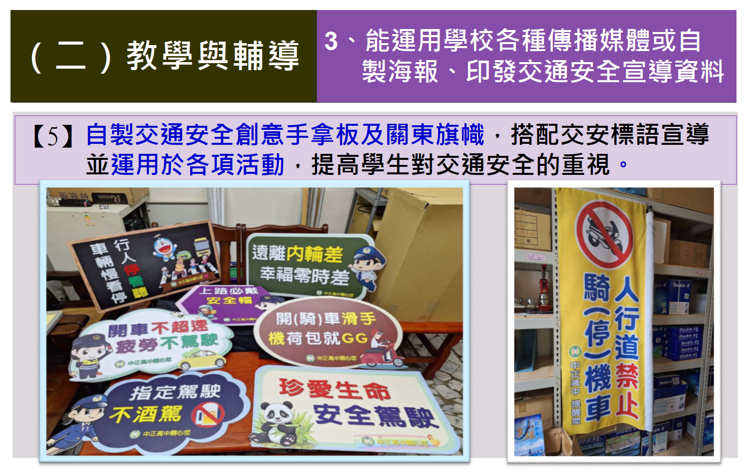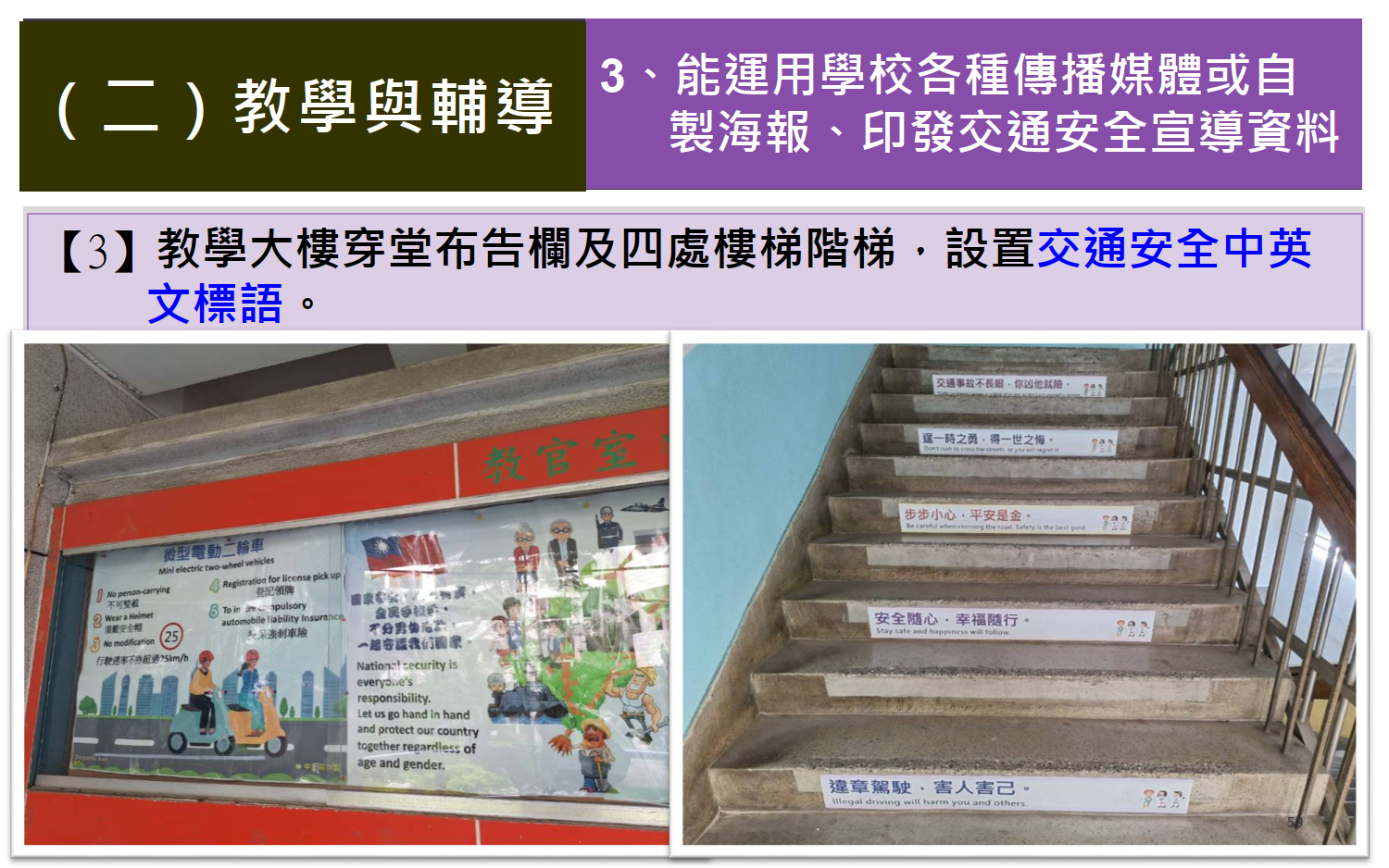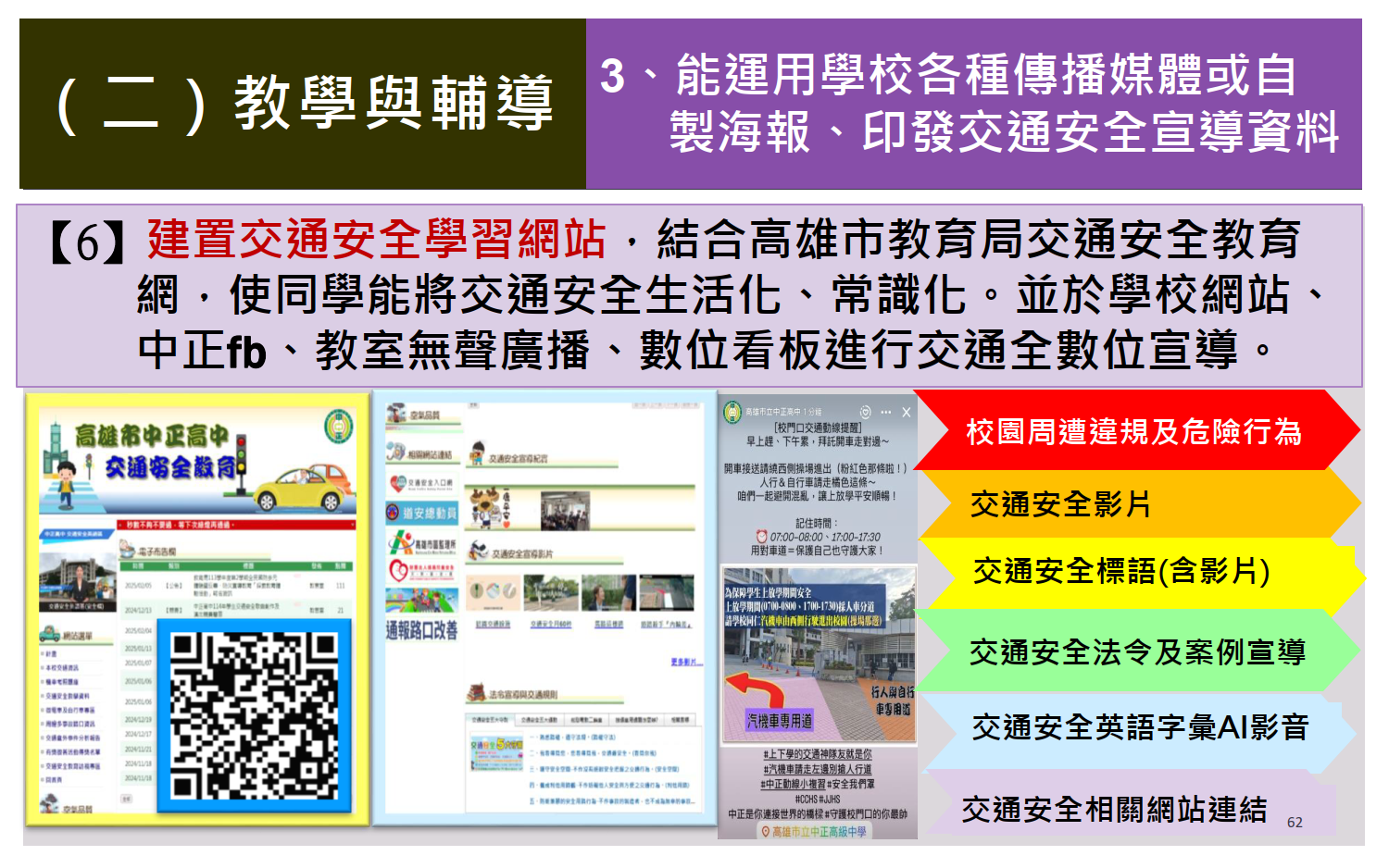 交通安全教育訪視專區 / 評鑑內容 / (一)教學與輔導 / 運用學校各種傳播媒體或自製海報、印發交通安全宣導資料