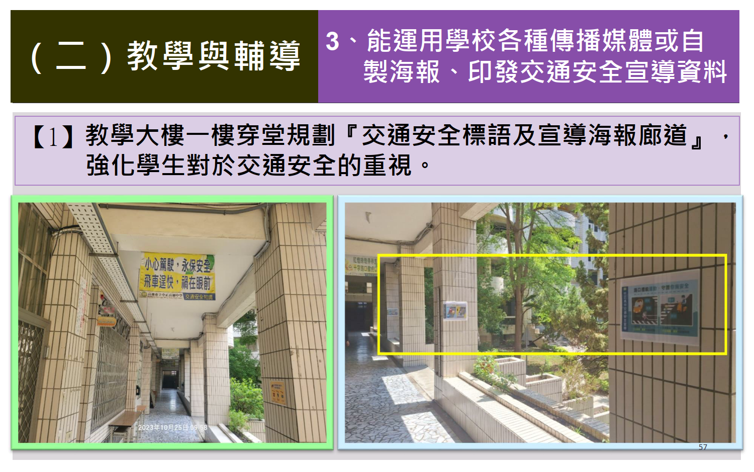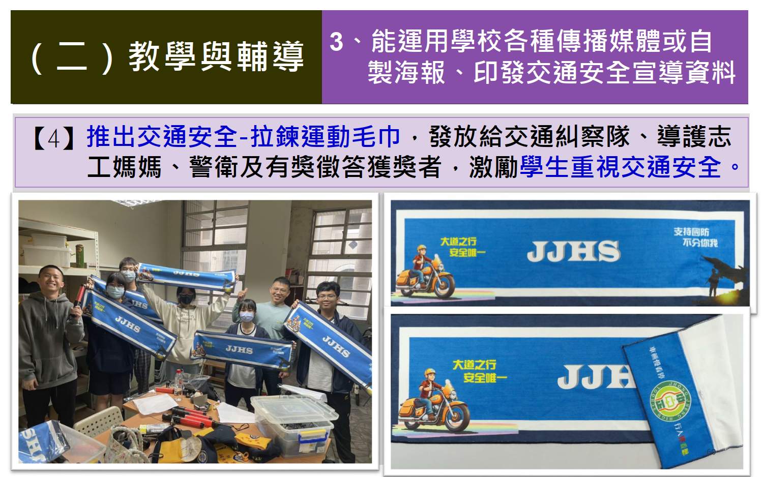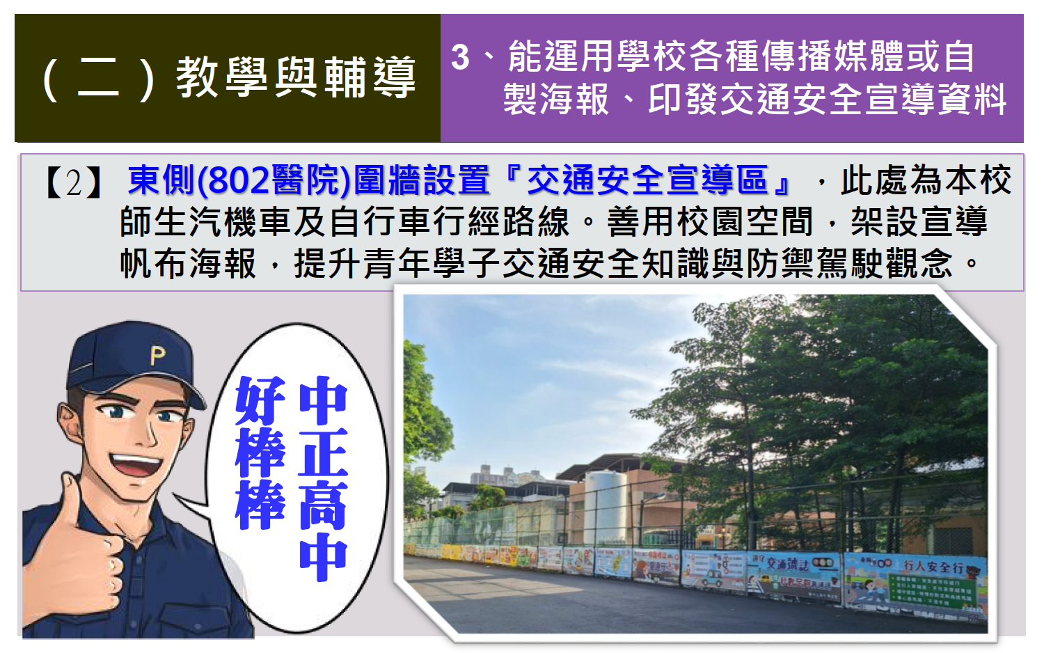 交通安全教育訪視專區 / 評鑑內容 / (一)教學與輔導 / 運用學校各種傳播媒體或自製海報、印發交通安全宣導資料