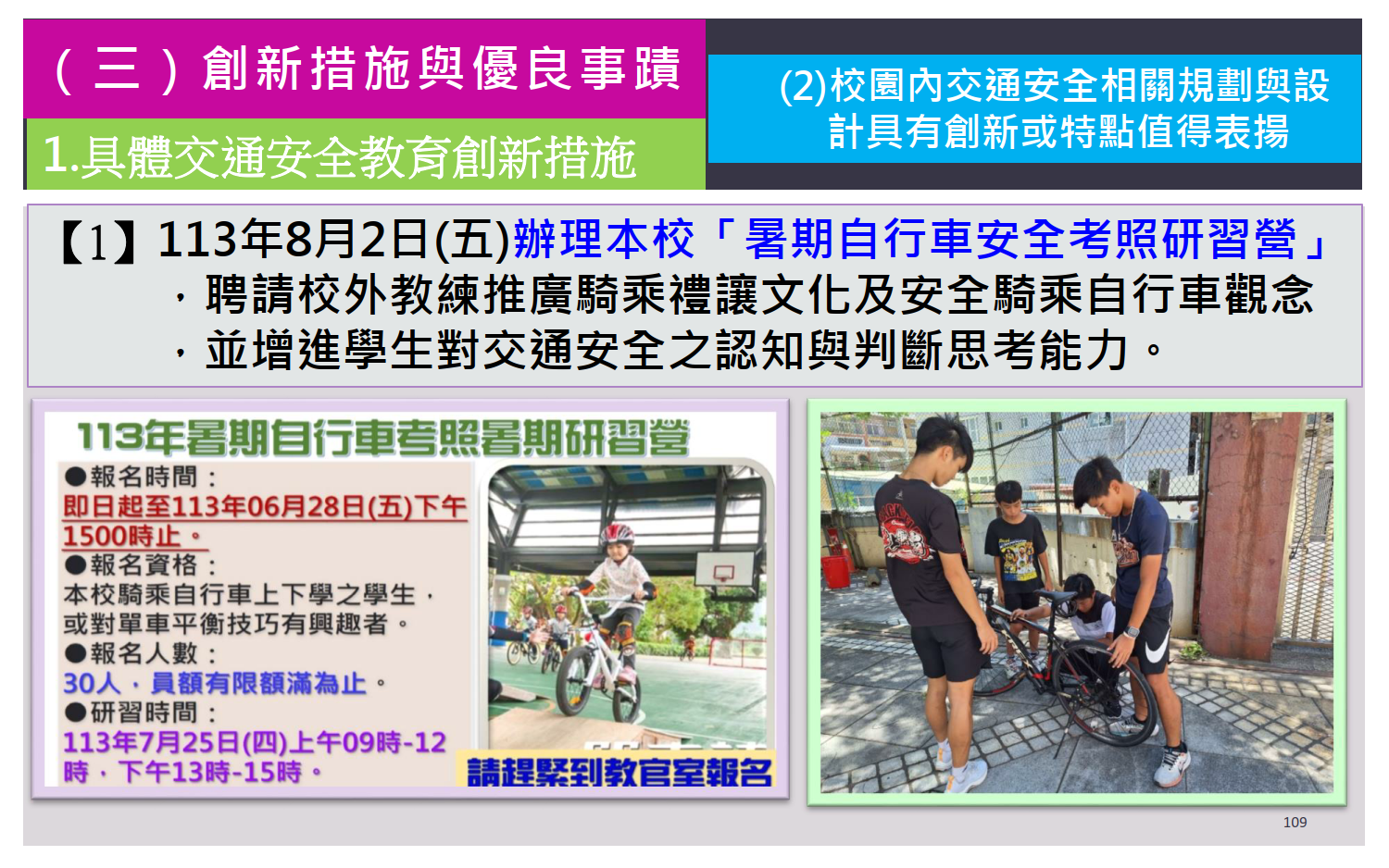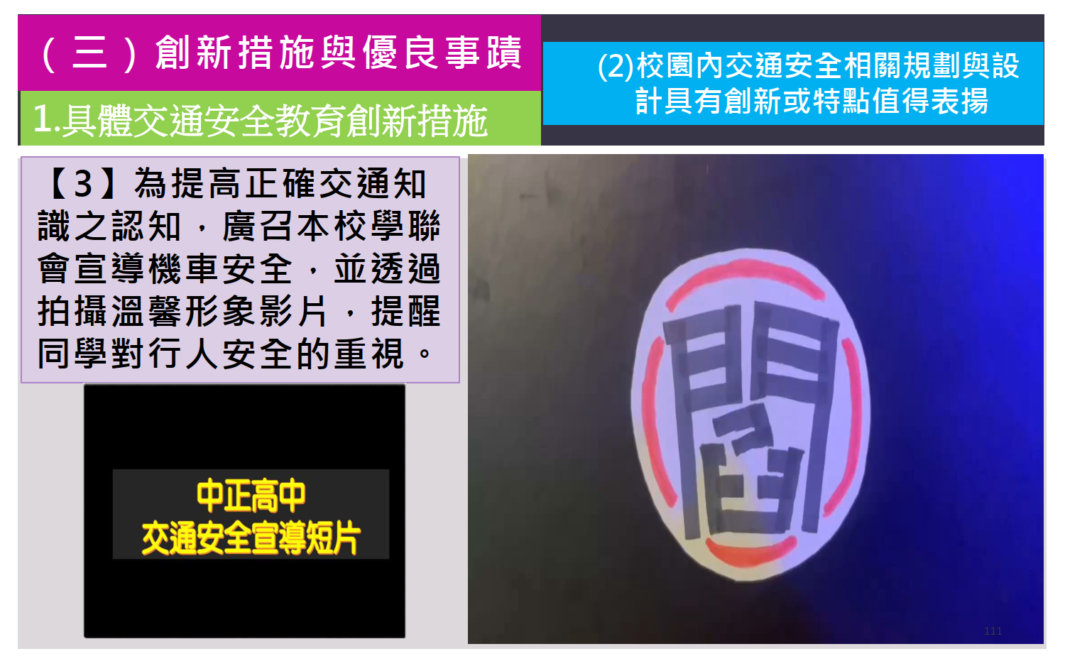 - (三)創新措施與優良事蹟